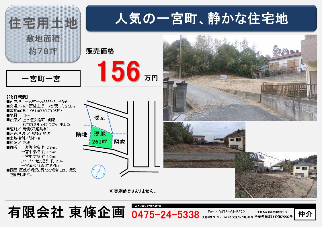 一宮町一宮8386-3、他3筆 ※表示されるアイコンは付近住所に所在することを表すものであり、実際の物件所在地とは異なる場合があります。弊社までお問合わせください。 Googleマップで開く |