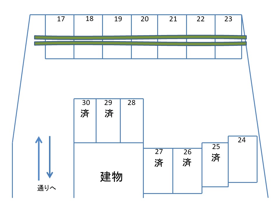| オススメ | 月極駐車場Aから続く小道を約30m程奥に入ったところにあります。 |